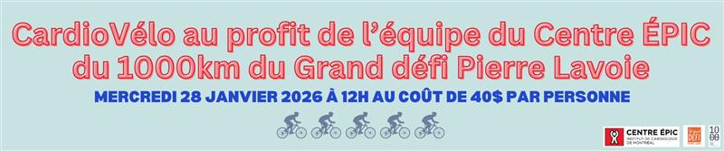 Rejoignez l’équipe du Centre ÉPIC pour une séance de CardioVélo le mercredi 28 janvier 2026 à 12 h!